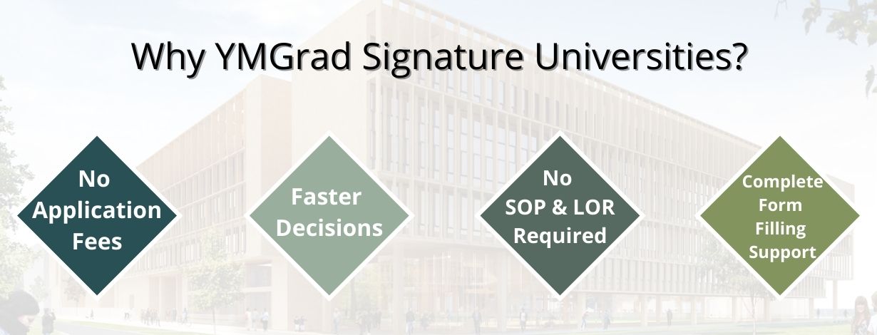 Is that all? Aren't there any more universities? YMGrad has numerous Signature Universities that come along with more brownie points apart from no application fee. Let's look at the perks of enrolling in the YMGrad Signature Universities!